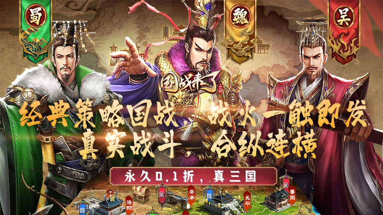 超高人气的三国题材经典策略手游《国战来了》0.1折版本火热上线!登录即享0.1折特权,绝无物价膨胀!游戏由国内顶级研发团队倾力打造,只为还原最真实、最热血的国战!在游戏中,您将置身于战火纷飞的沙场,扮演一路诸侯,待到时机成熟,便可联合战友,举国之力剑指洛阳!游戏贯彻三国鼎立的理念,在此之上以智取胜,玩家可以结盟共抗强敌,也可以屯兵一方,睥睨中原!游戏玩法丰富,赛季制玩法“天下布武”让玩家不再孤单,力求打造一款福利真实,有趣耐玩的正统三国策略手游!