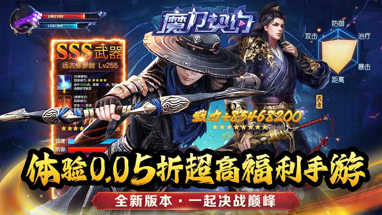 【游戏介绍】 带你体验0.05折抄底折扣超高福利的放置手游,感受100%原汁原味仙侠新大陆,海量重磅福利免费送!不花一分钱也能当大佬!精美细致的美术风格,多式多样的全新玩法,让玩家可以体现一个全新唯美另类的仙侠世界。 【游戏特色】 1,永久充值0.05折 2,进游就送至尊10 3,GM转盘N多免费10连抽,奖励领不停 4,挂机就能获得元宝,根本不用动手 5,7日签到送高额充值卡,仙骑、法身统统到手